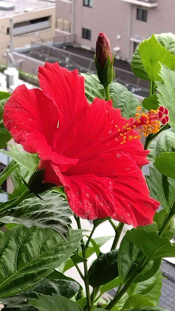 バルコニー/ベランダ,南側ベランダ,赤いハイビスカスの投稿画像