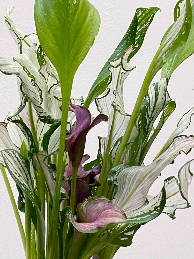 葉っぱの白い部分が透けて とても綺麗でした! カラーの花って 花に見える部分は萼が変化したものだそうです