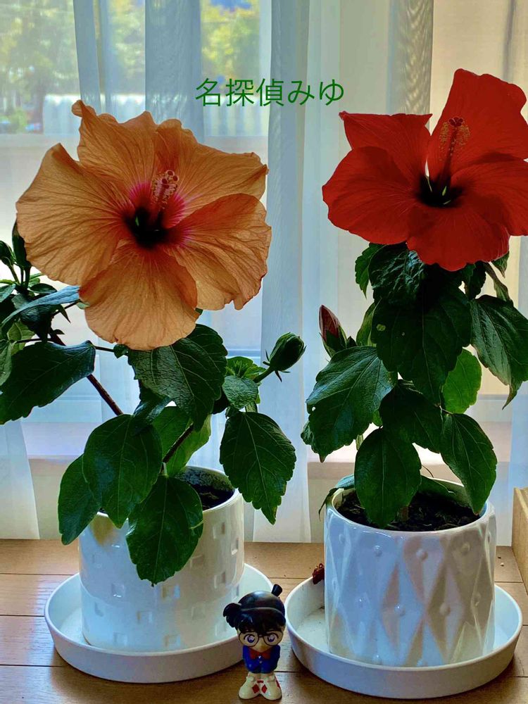 ハイビスカス🌺初めてだけど大きくて鮮やかな色にお部屋が南国です〜🎶