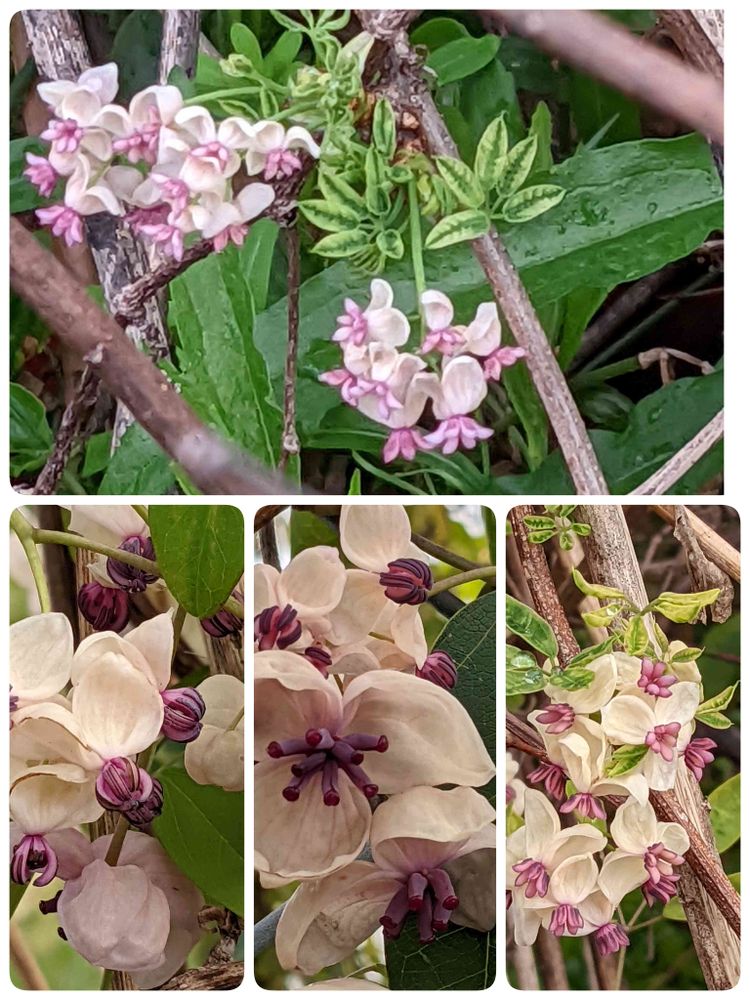 アケビの花も色んなのがありますが、この時のお花はピンク色で綺麗でした。