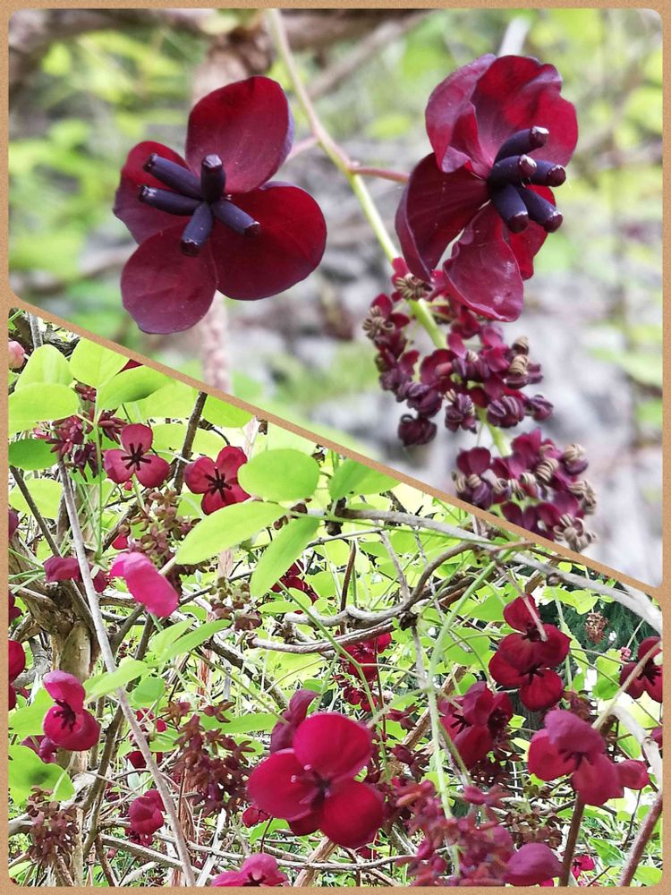 アケビの花の形や真紅の色合い素敵で❤️✨