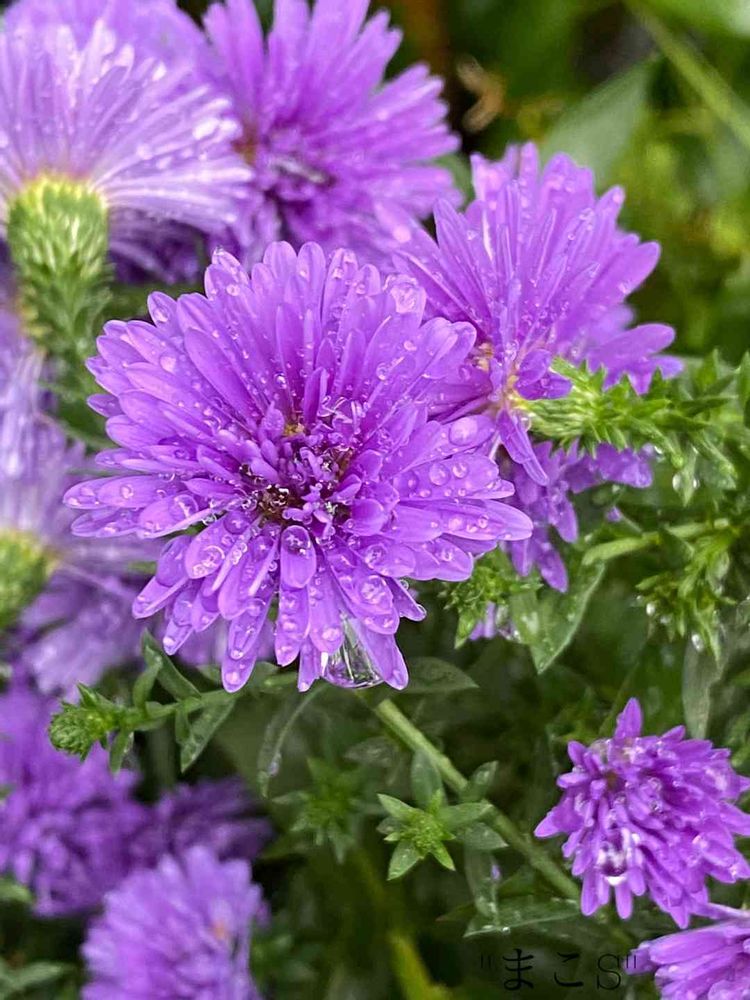 沢山のお花が、雨の中を雫が重そうに咲いています💧