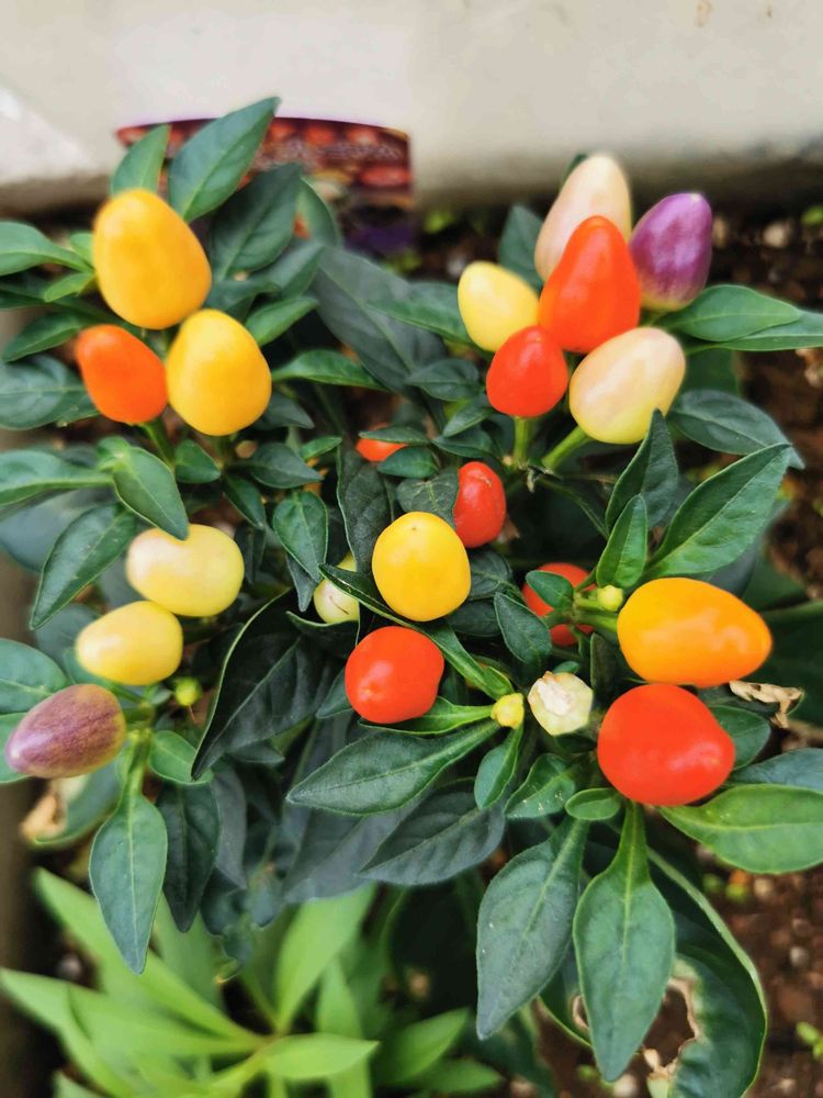 綺麗な花といつしょに寄植えされていたゴシキトウガラシ💗