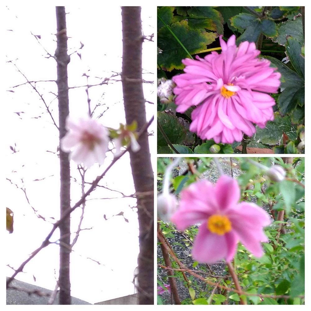 おはようございます☀左は十月桜🌸高くなった木に一つだけ撮れました🌸