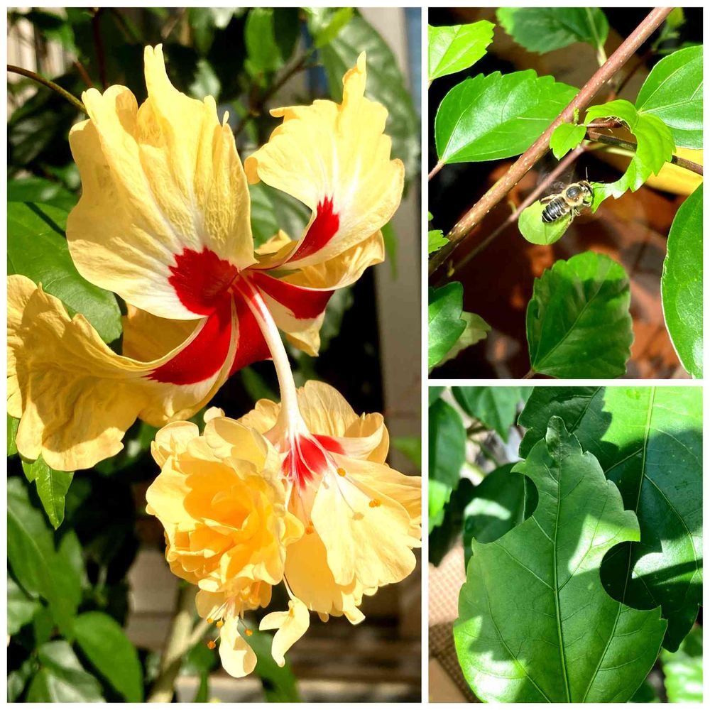 ハイビスカスさんに被害が出るのは悲しいけど、フラフラ飛んでいく蜂さんを想像すると、ちょっと憎めないかもです🥰