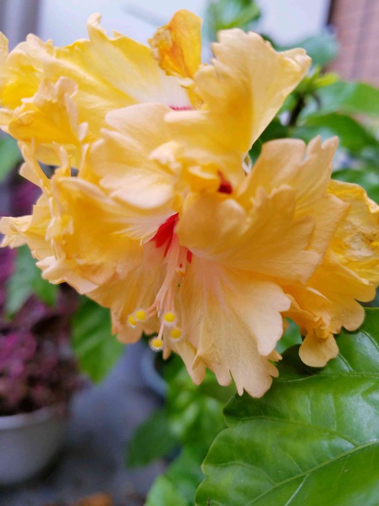 小さめのハイビスカス・イエローフラミンゴが咲きました❣️