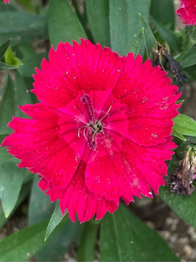 花壇で見つけたナデシコ赤。