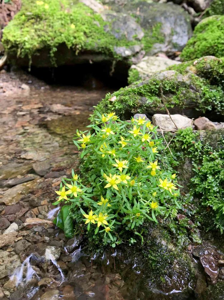 黄色い星型のお花はまるで、少し薄暗い沢に散りばめられた星くずのよう⭐️