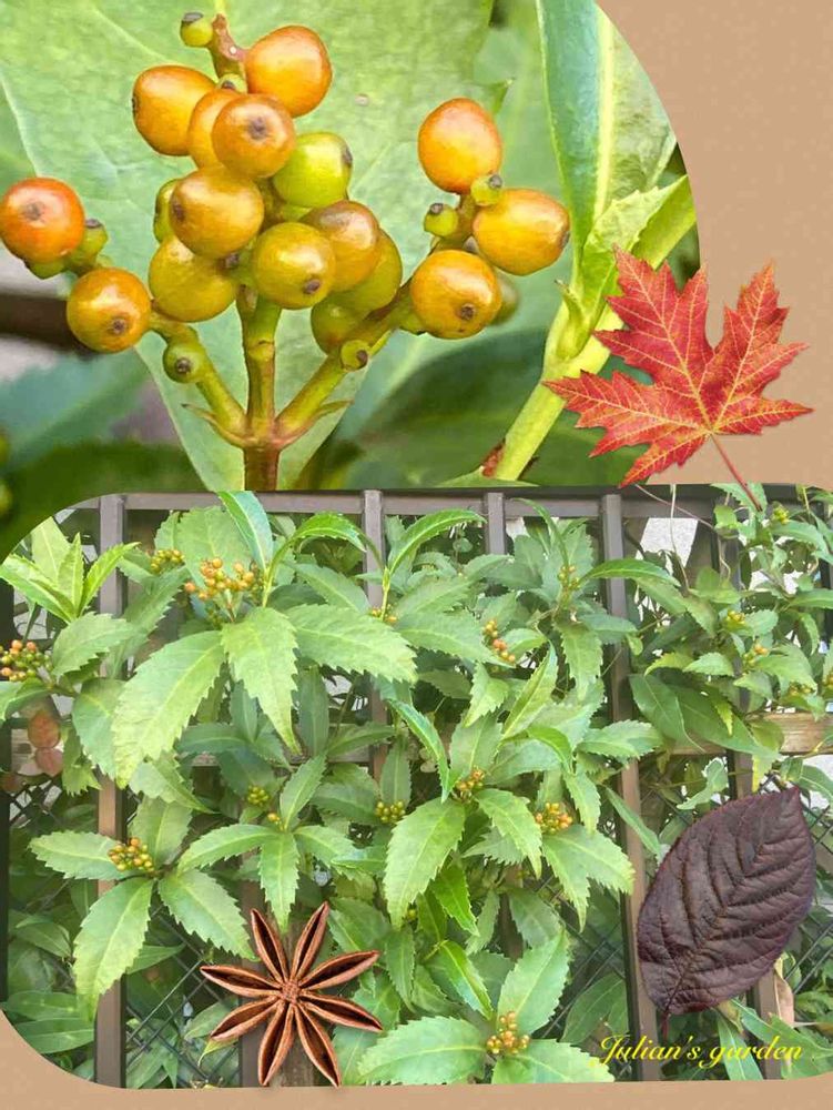 今年もフェンスの向こう側に千両の実が沢山付いてきました💛🧡
