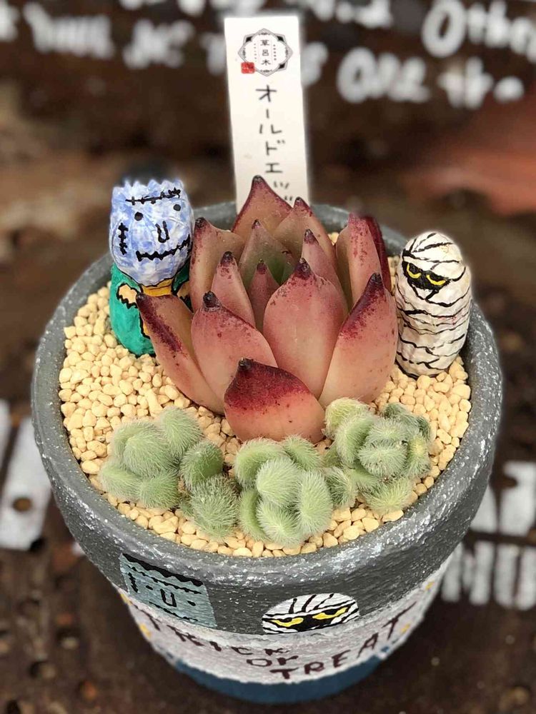 イメージしてた多肉さんに出会えてやっとハロウィン鉢完成しました✨
