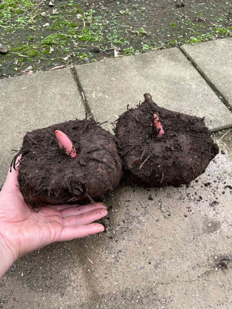 花が咲くと、蒟蒻芋が腐ってしまうそうなので、今年こそは、手作り蒟蒻に挑戦しようと思います。この芋、10年以上は庭に植えっぱなしでした。