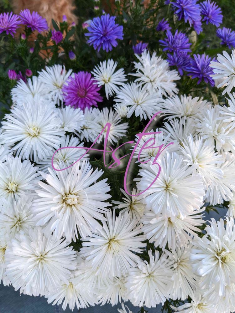 アスター3色寄植え✌️白ちゃんがモリモリ🌱しすぎて、あと2色がなかなか育たず…💦