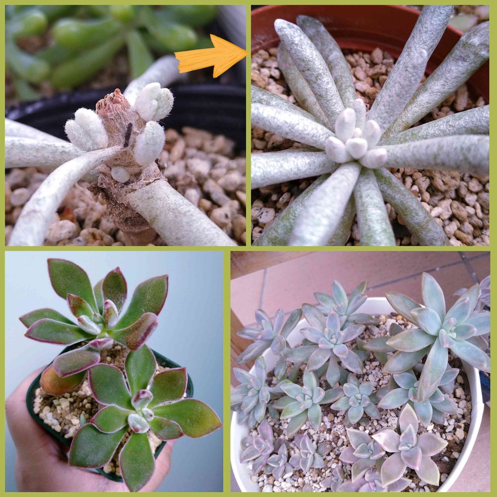 ハムシーも色づきはじめて、葉挿しっ子の朧月と秋麗?鉢もきれいな色に😉