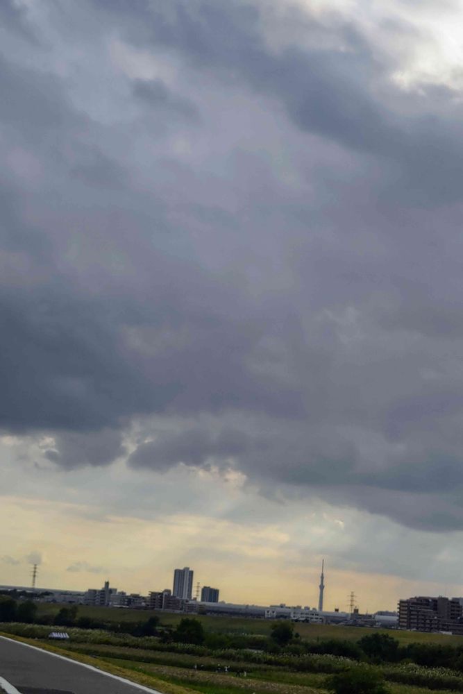帰路、スカイツリーを見つけて、喜んでたら、天使の梯子。