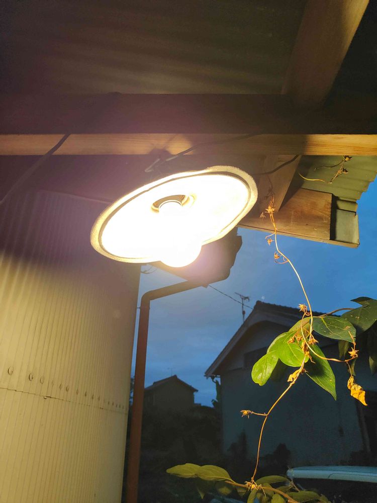 盆柿を伝わって軒まで実をつけて来年は大変だね〜除草が、それとは別に裸電球に傘有ったよね〜60年前はタイムスリップしてみました