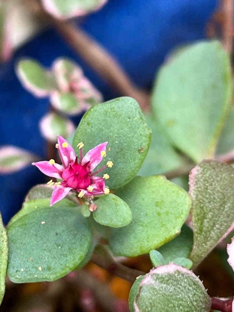 よーく見たら小さな花が可愛らしい色で咲いていました。ただ一つでも、嬉しいお花ですね〜