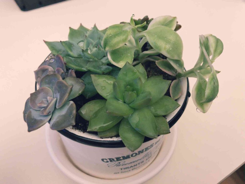 キャンドゥとダイソー産の多肉さん達。初めて寄せ植えしてみた!どんな風になるのかな〜ワクワク(o^^o)ジョイスツーロは奥に隠れてます。右の子だけ名前が書いてなくてわかりませんでした。