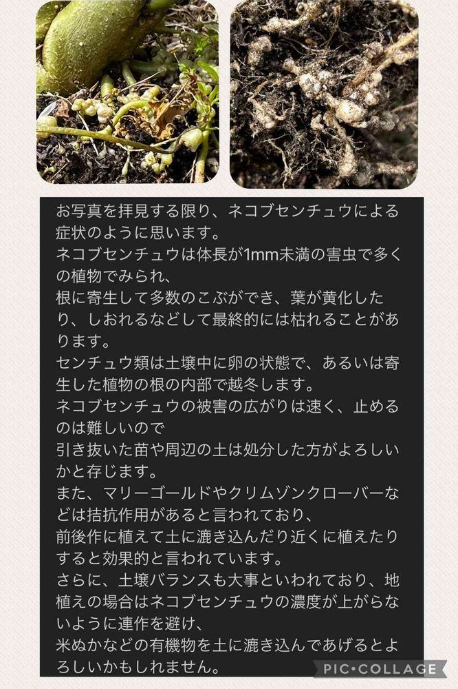 瘤あるしネコブビョウを疑いましたが、PWさんに相談してみました。