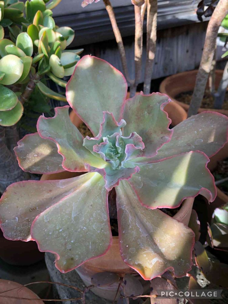 細やかなウェーブが多肉ちゃんの不思議ですよね。それも縁だけピンクだなんて…