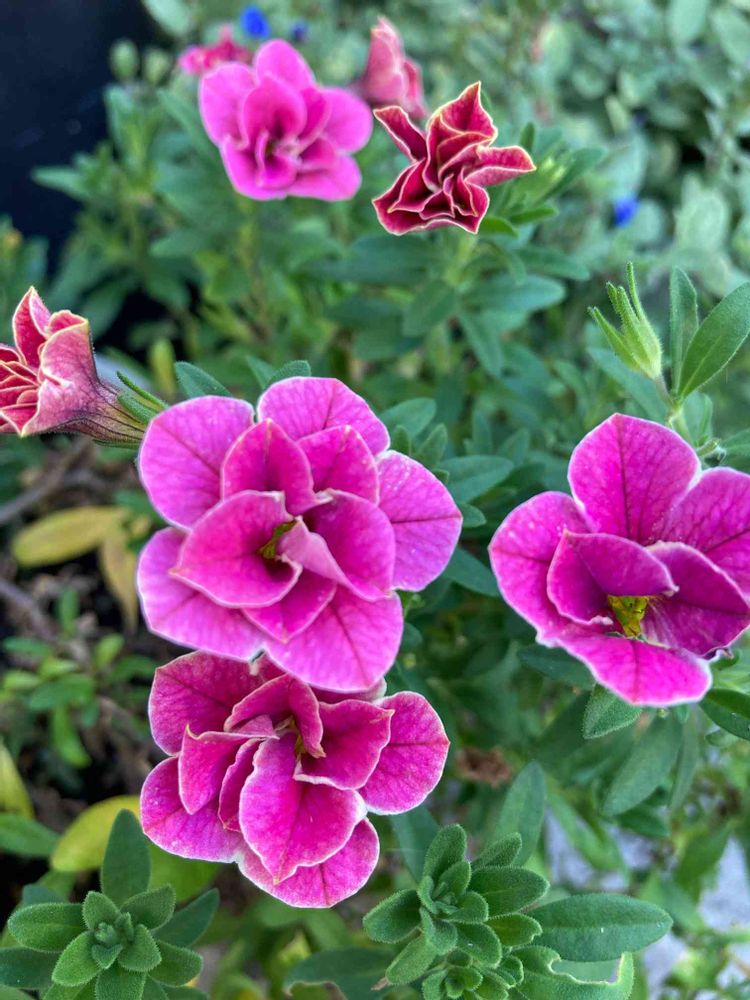 今年は初めて八重咲きカリブラコアを育ててみようと思って、このチェリー🍒と白いミルクレープを🥰