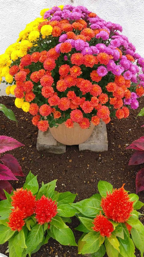 いつも素敵な寄せ植えの道沿いのお庭は、久しぶりに通ると色とりどりの小菊が鉢いっぱいにこんもり咲いていました♡゚(ღ˘⌣˘ღ)ステキ♡
