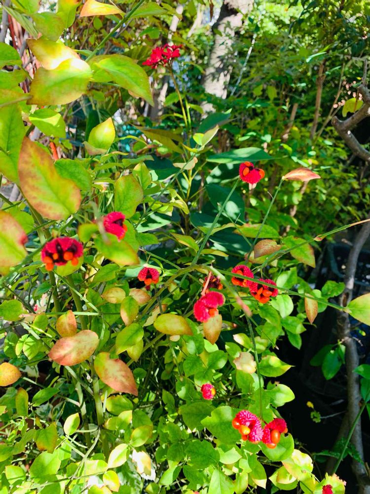 これも地植えで、気づけば色づいていた。垂れる赤い実がなんとも良い。