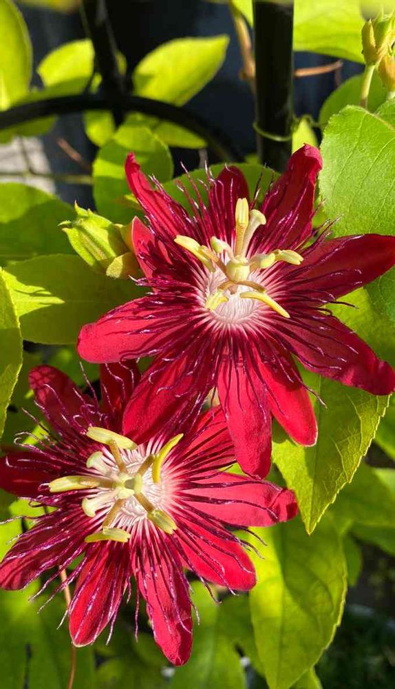 私の時計草 最初は そんなに生い茂りそうじゃなかったけど 大きい支柱をする間がなく 気づいたらワシャワシヤに暴れて出しちゃったー😅あっちこっちから芽が出ているので来年はちゃんとした支柱で育てるつもりです。😊