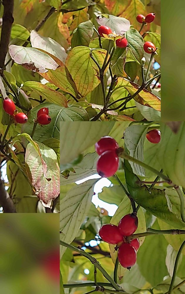 ハナミズキの葉が紅葉し始めて、真っ赤な実が沢山成っていました🔴🌿
