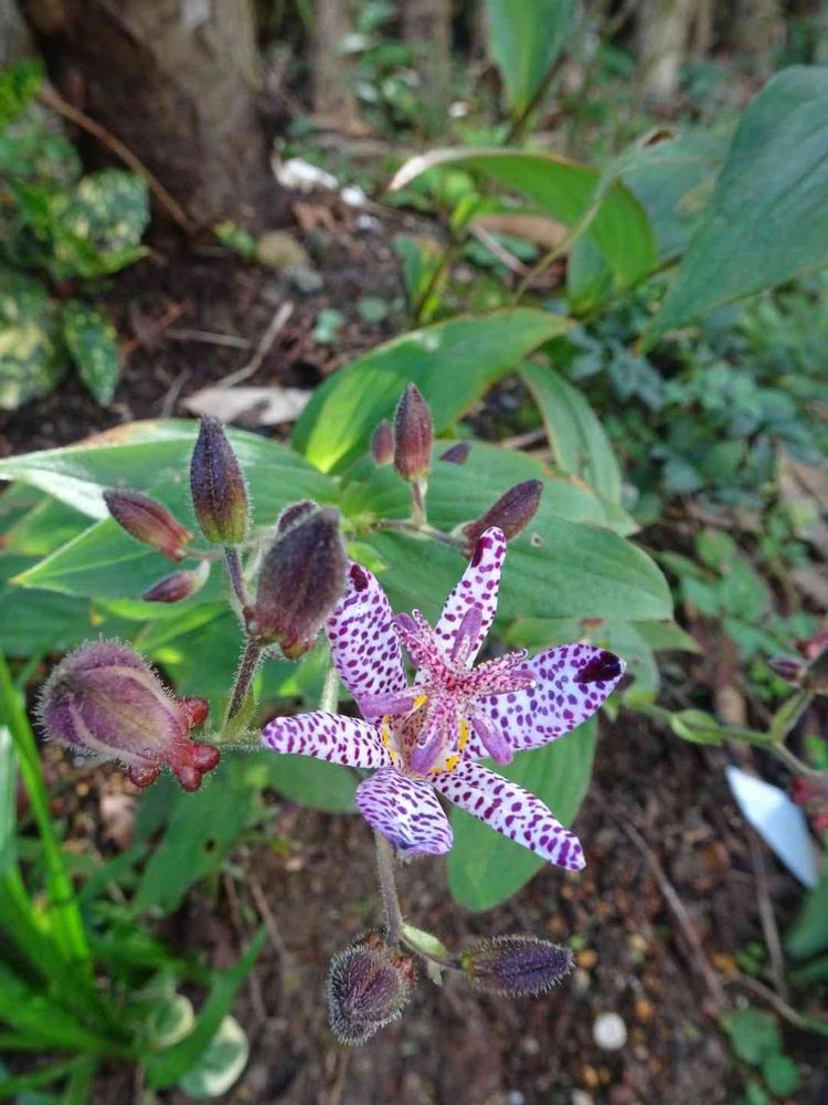 おはようございます 今日の花ホトトギス やっと花ひとつ 見せてくれてます✨💚