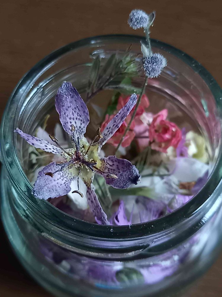 家に咲いている斑入り葉のホトトギスをドライフラワーにしました
