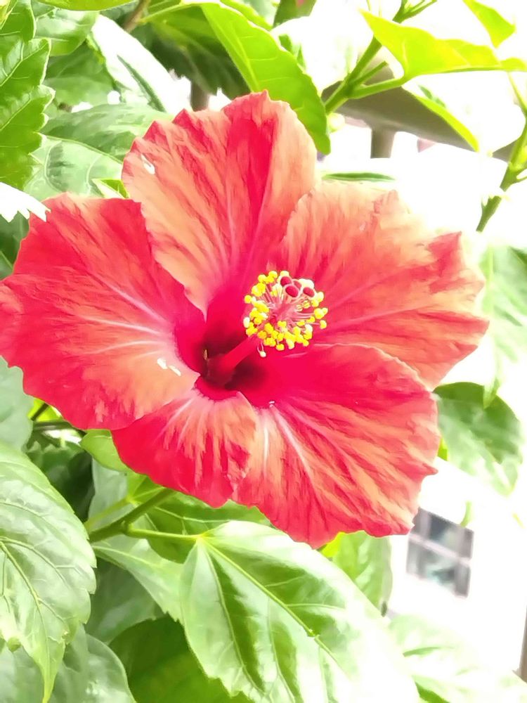 バルコニー/ベランダ,寒い朝♪,赤いハイビスカス!の投稿画像