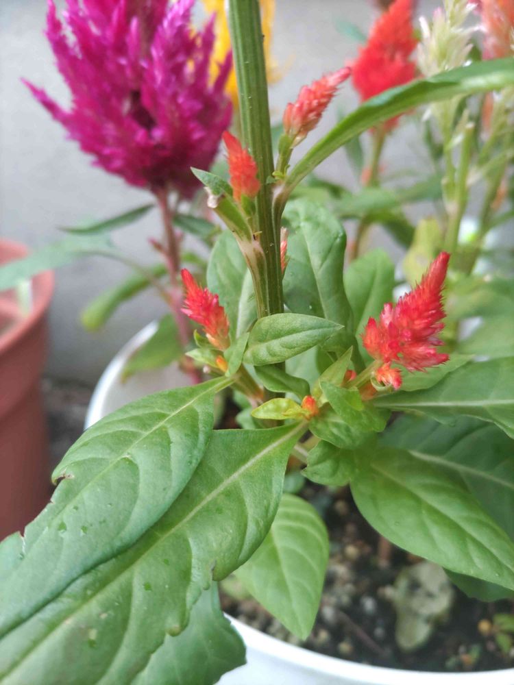 親ケイトウの茎の間からかわいいケイトウベビーちゃんが誕生してるよ🤩