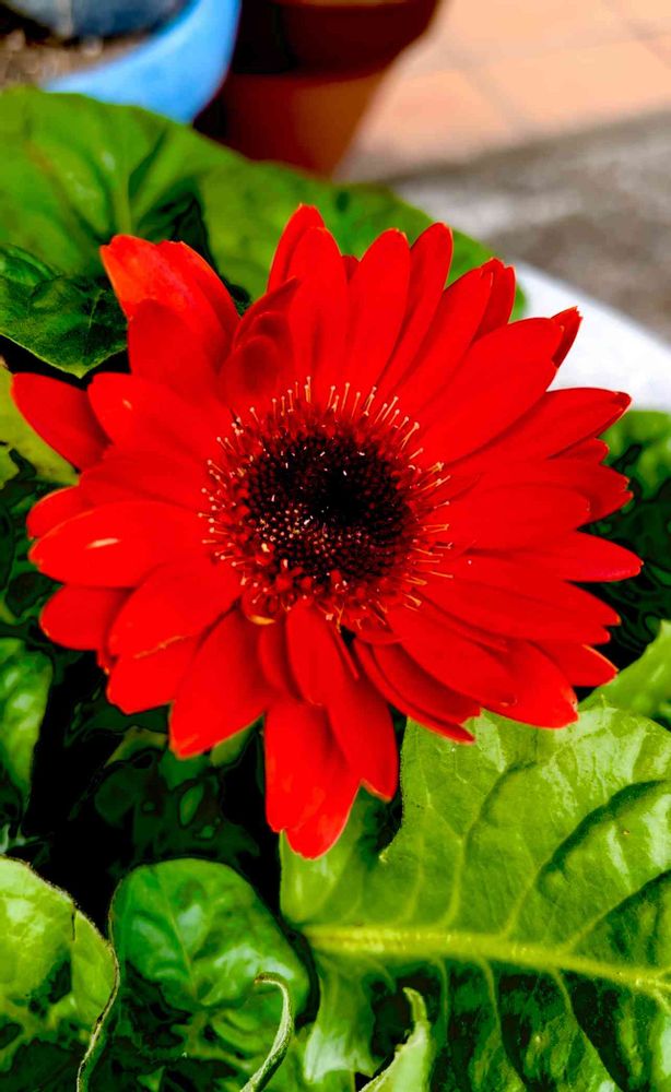 真っ赤なガーベラ、花びらが不揃いなところがまた可愛いですね♥