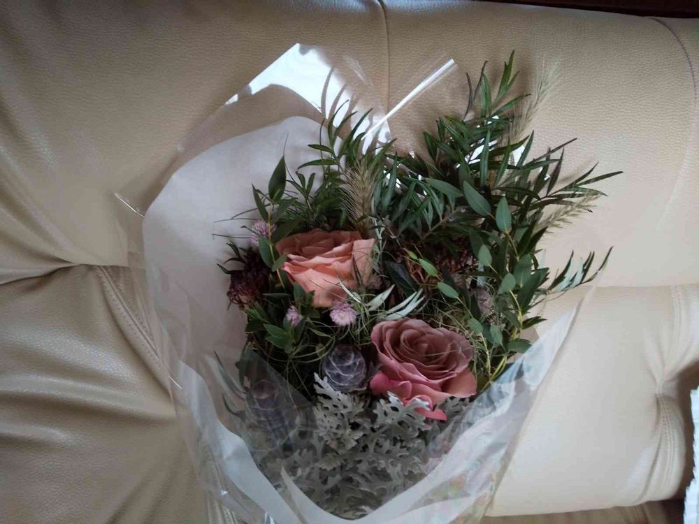 オーダーは「ドライになるお花で花束💐中身はお任せで」