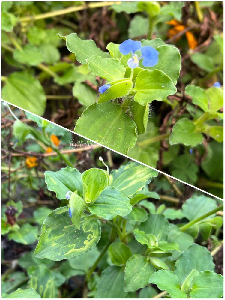 名前通り葉は丸くて普通のツユクサより這性が強い感じで背は低めでした。