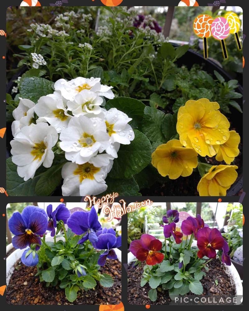 こぼれ種から自然に出来た寄せ植え(パンビオ、アリッサム、他)にプリムラジュリアンを添えてみました✨🌟🌟