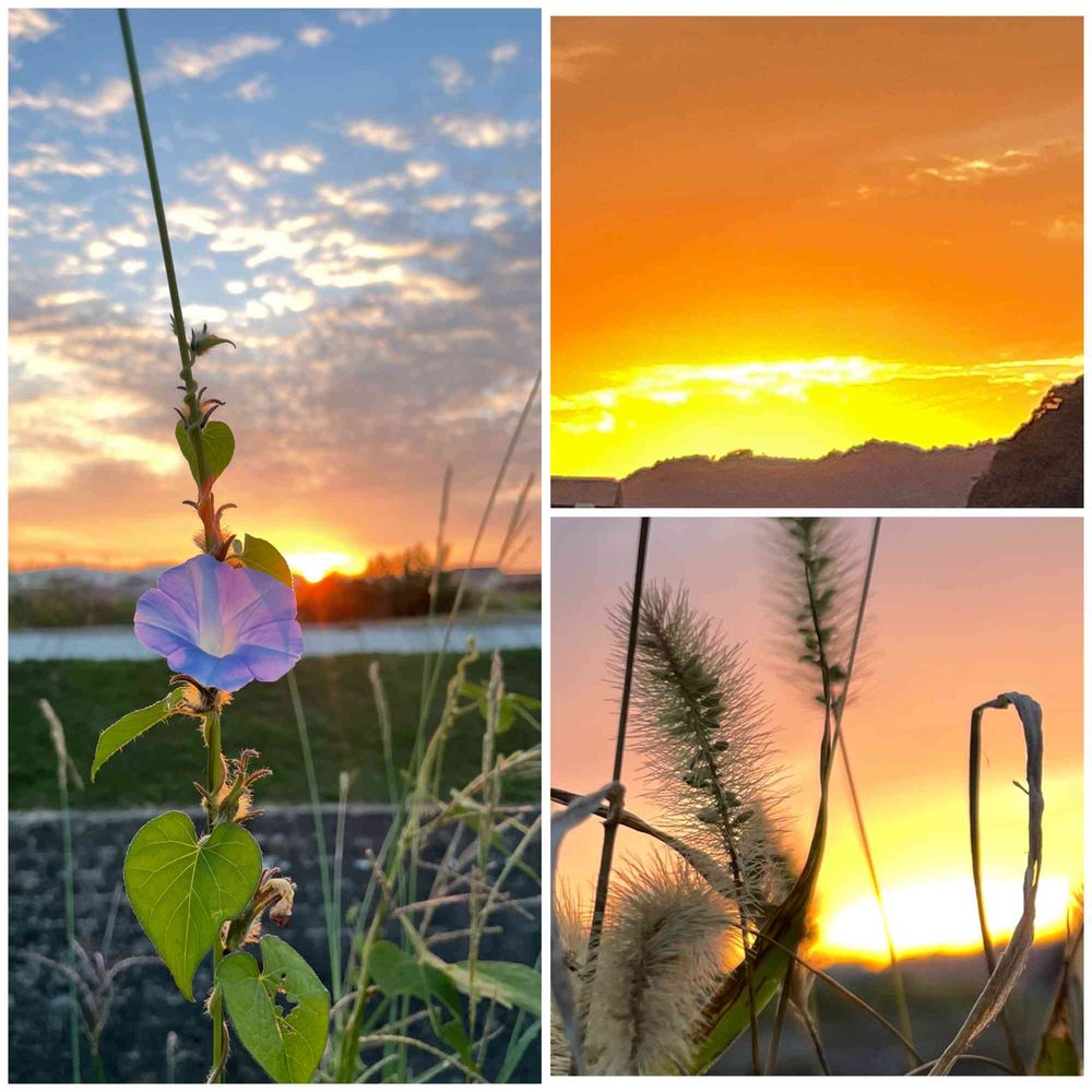 アサガオも猫じゃらしも綺麗な空をバックに映えてるね〜🌇💕