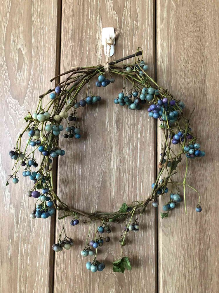 先日のノブドウクルクル巻いてリースにしました🔵💙🔵💙