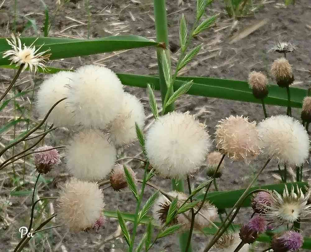 アザミっていうと棘のイメージだったけど、こんなふわふわポンポンができるんですね⚪️