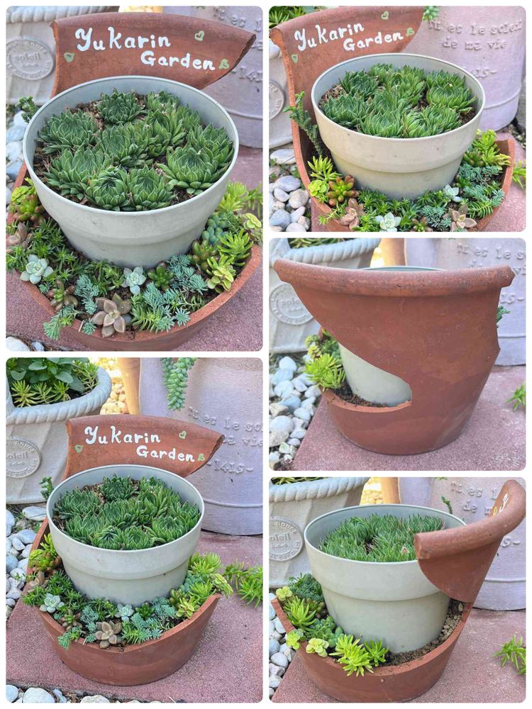 なんか良い感じに割れてるから寄せ植えに使いました😁✌️