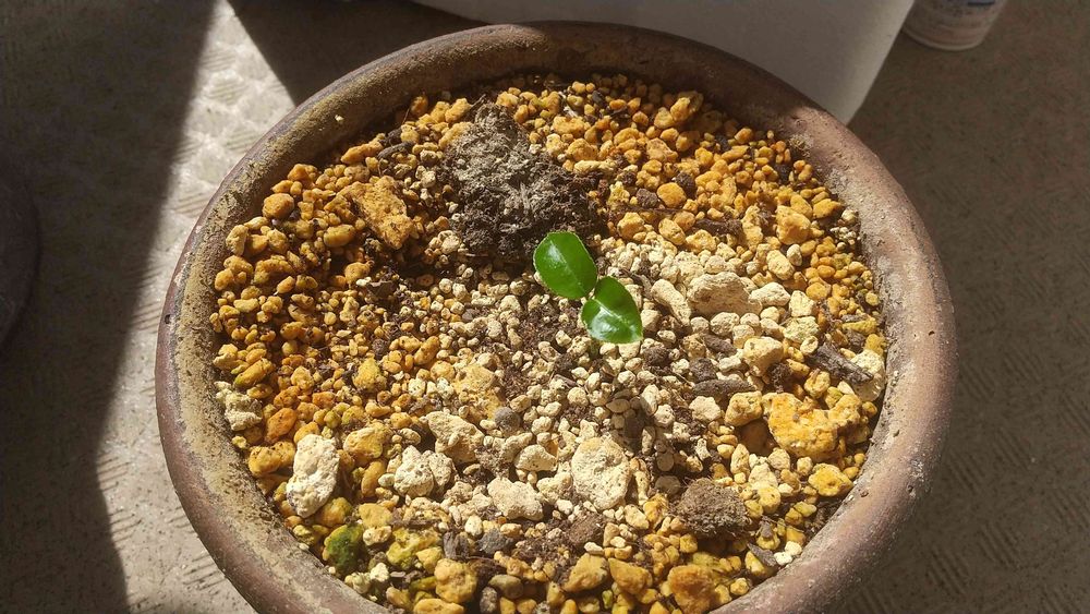 スーパーで買った大好きなピンクグレープフルーツ(南アフリカ)を植えたら目が出た。でも実がなるには10年必要らしい、、まじか〜〜