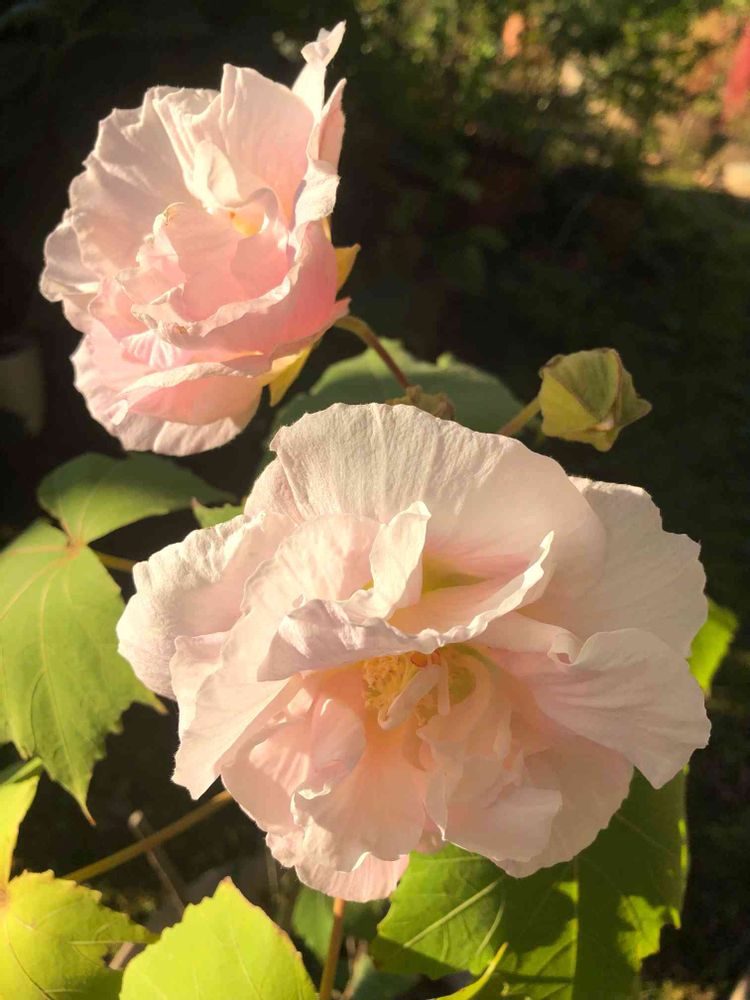 今年は咲かないのかな🤔と、思ってた酔芙蓉が夕方の色になって手を振ってました😳