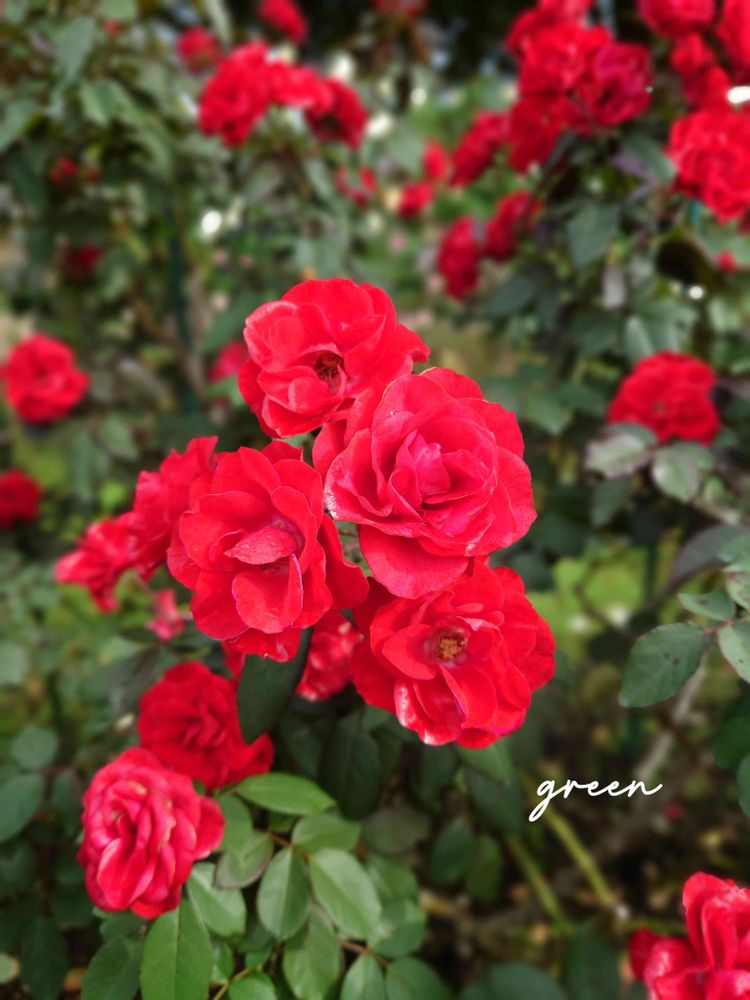 ブーケのような房咲きが素敵な真っ赤な薔薇🌹