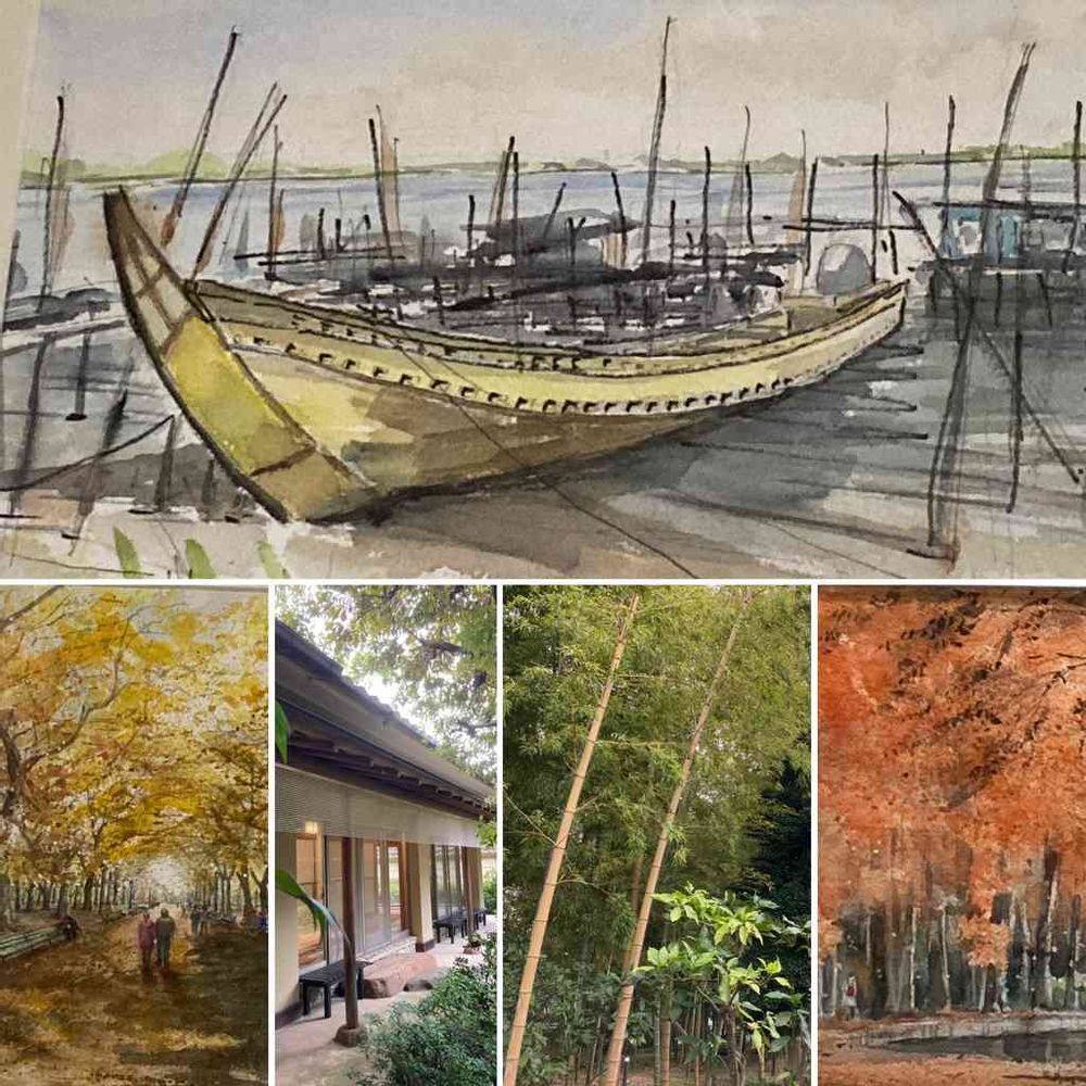 弟の水彩画、竹林が綺麗な氷川の杜🍁を堪能して、、