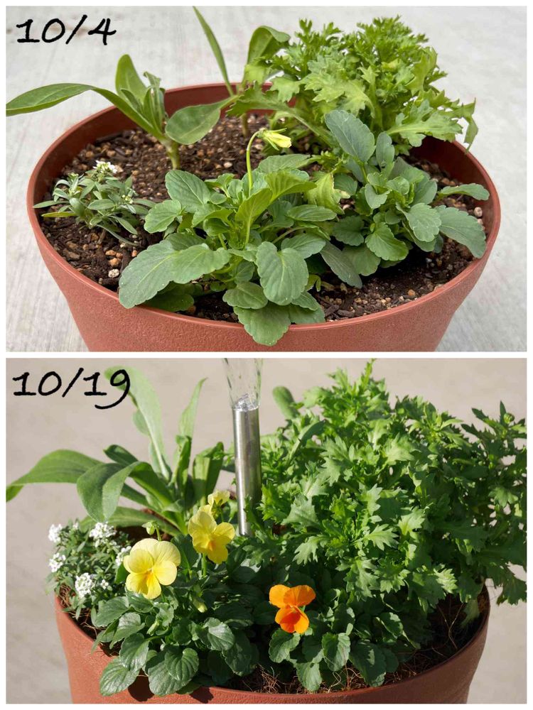 10/4に定植した寄せ植えが約2週間で結構成長しました🤭