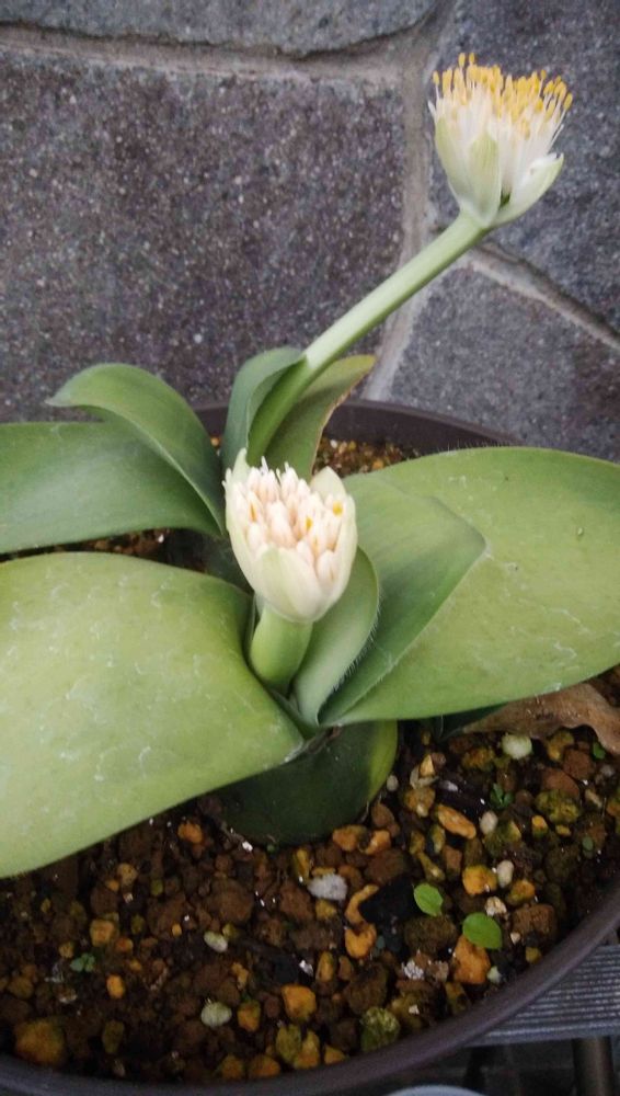マユハケオモト…小さなお花が集まって、黄色の蕊が沢山出てきたら開花です!✨不思議なお花です!🎶