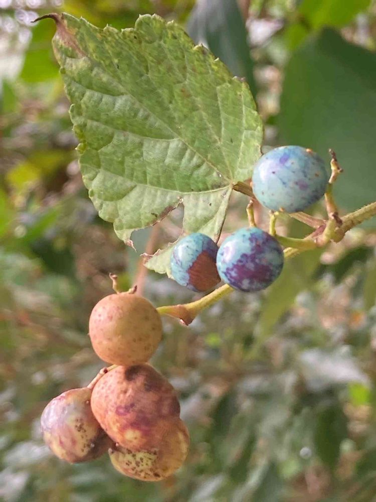 野葡萄の実の青〜紫のグラデーションが綺麗で大好きなんですが、あまり見かけることがありません😓