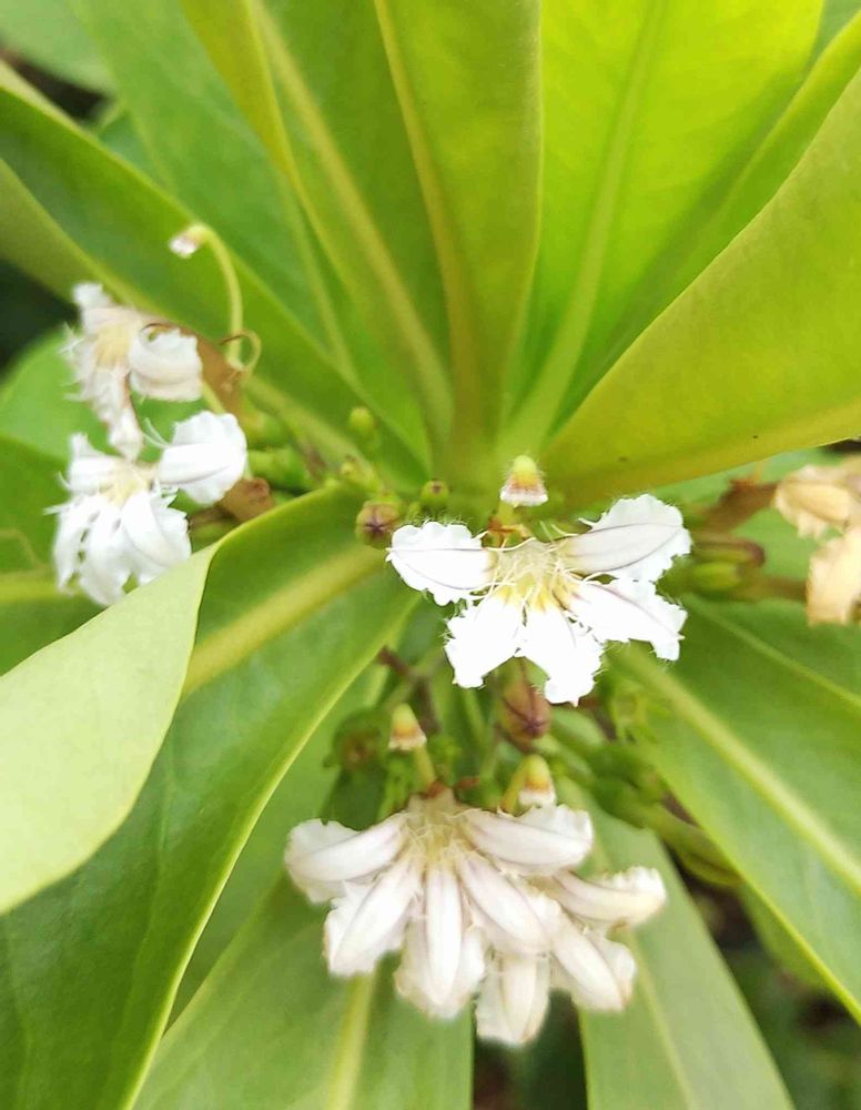 クサトベラ💓💓半分の形のお花、とても素敵です(o^^o)こんなイヤリング、欲しいなー💓💓この花びら、以外に硬いのです💦💦💦沖縄の海辺には必ず咲いていますよー🌴