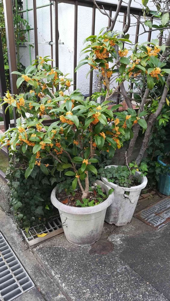小さな苗木を植え付けて4年、1度も植え替えや水やりはしていないのに毎年咲いてくれるキンモクセイ。場所がいいのかな?