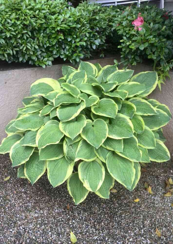玄関のホスタ、冬に鉢まししたのですごいぼりゅーみーになりました。
